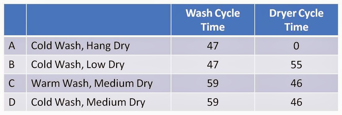 Okay, so now you have 2 or more loads of laundry that need to get done in succession. You want to minimize the total time to wash and dry all the loads by minimizing the time the washer and dryer are not in use. This becomes particularly useful if you are at a laundry mat, in a hurry and only have use of one machine.